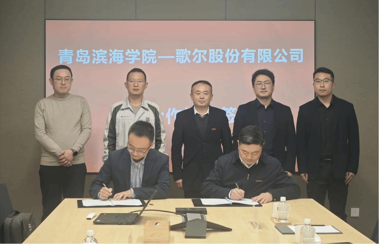 座谈结束后,在与会人员的共同见证下,翟明戈副校长与李高峰总监分别代表校企双方,正式签署了《青岛滨海学院-歌尔股份有限公司校企合作协议》。根据协议,双方将共同组建“机电工程学院歌尔订单班”,联手打造校企协同育人基地,旨在全面提升应用型人才培养质量,助力毕业生实现更高质量就业,为企业发展提供稳定的人才支持。