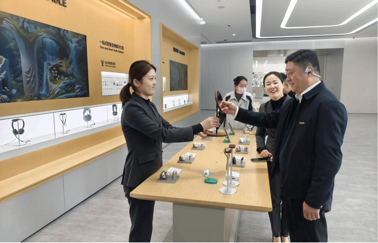 在歌尔科技体验中心,翟校长一行在公司领导的陪同下,近距离观摩并亲身体验了智能眼镜、VR产品、智能耳机等一系列前沿科技产品。通过深入的讲解与互动,校方代表深刻感受到了歌尔强大的技术创新能力及其对产业发展的深远影响。