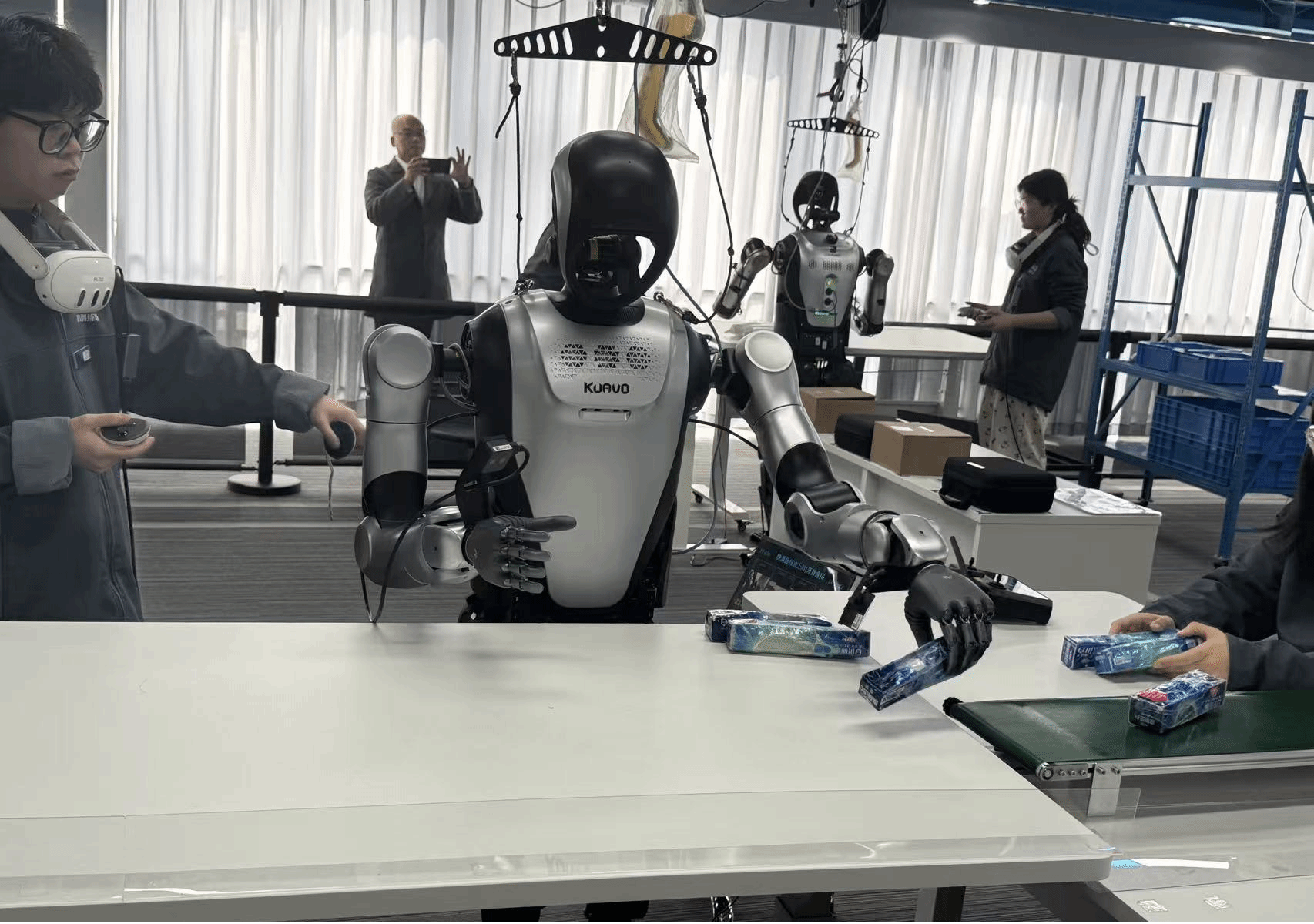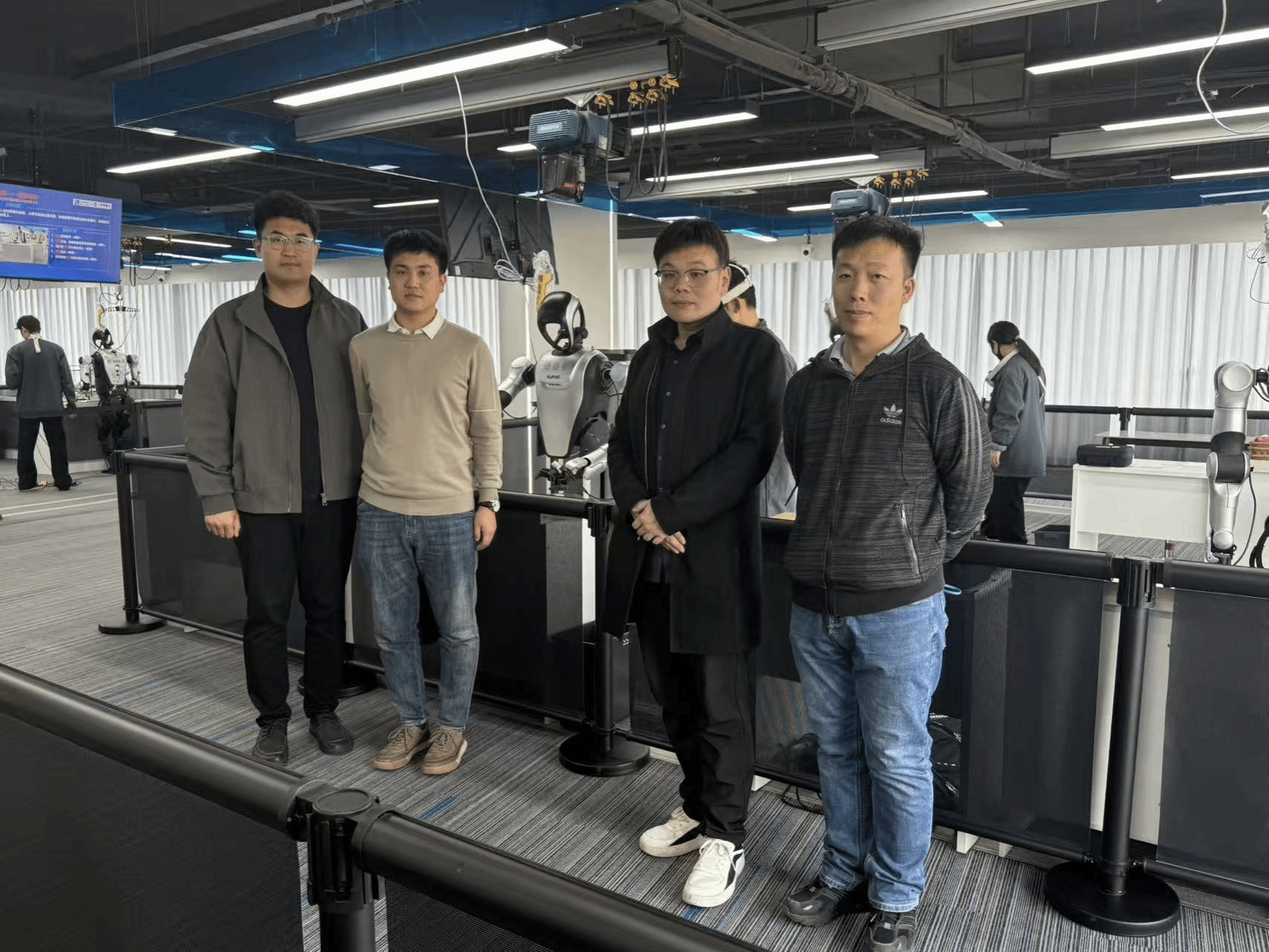 会议期间,与会人员实地参观了青岛市人形机器人数据采集训练场,现场展示了物流分拣等典型应用场景。多台人形机器人参与操作演示,体现了其在数据采集、场景训练、任务执行及技术验证等方面的应用潜力。通过观摩,我院教师对人形机器人训练场景构建、平台化服务模式及产业协同创新机制有了更直观的认识。